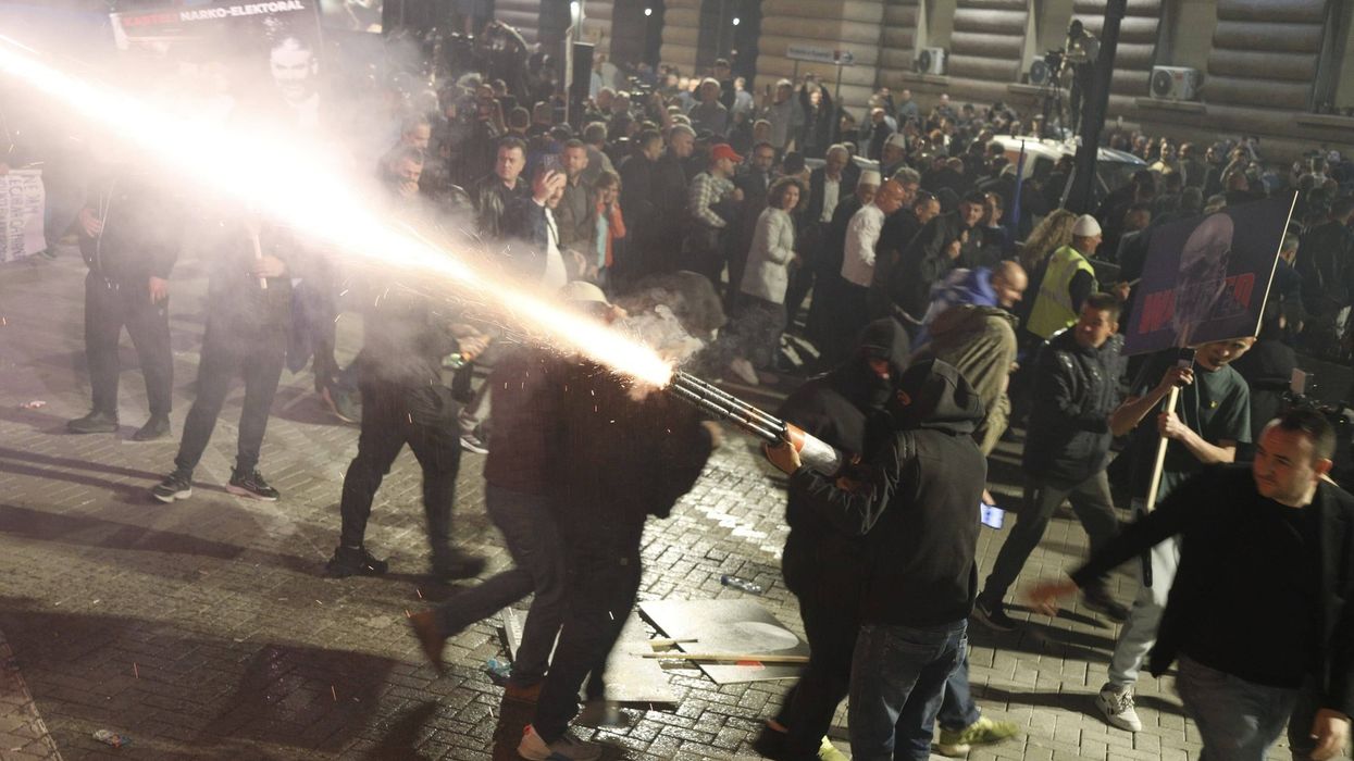 Një efektiv policie u lëndua gjithashtu për shkak të një kapsolle që i shpërtheu në trup. Policia shoqëroi 22 persona ndërsa u sekuestruan 4 çanta me molotovë./Euronews Albania