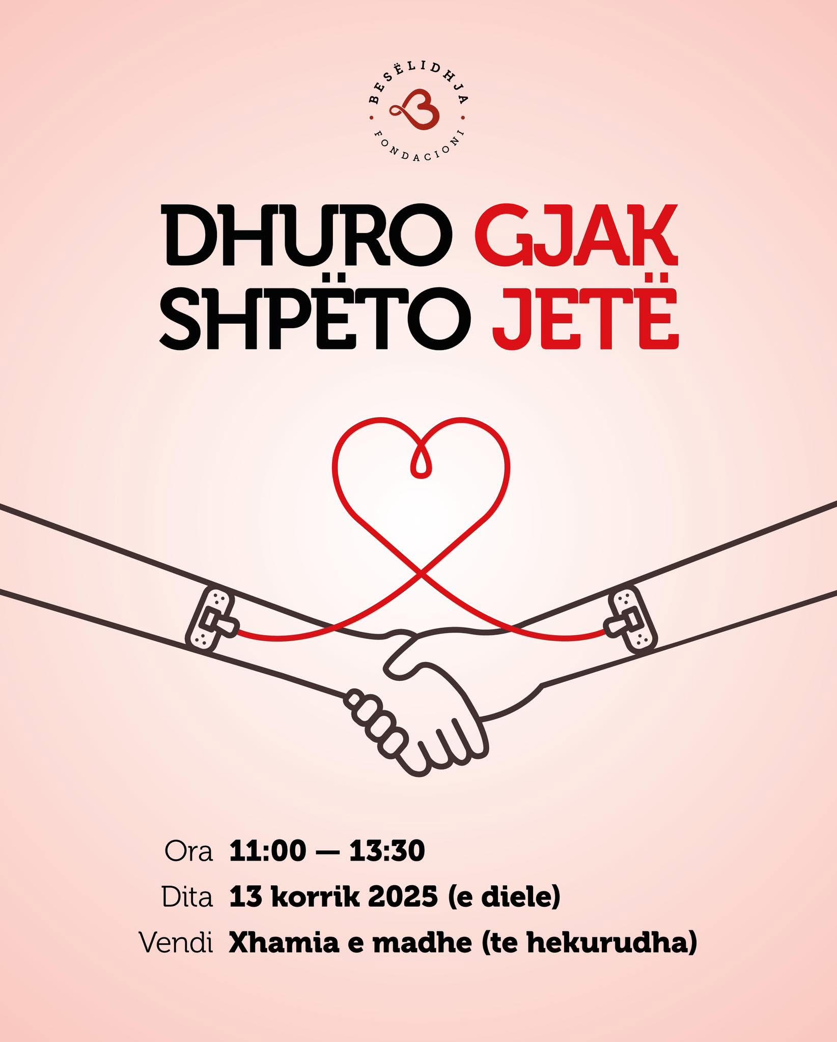 Fondacioni “Besëlidhja” do të organizojë të dielën, më 13 korrik 2025, një aktivitet të rëndësishëm humanitar për dhurimin e gjakut, me moton “Dhuro Gjak – Shpëto Jetë”.