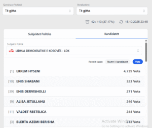 Lajme Kandidatët më të votuar nga LDK në Podujevë – 37.17% e votave të numëruara për Asamblenë (LISTA)