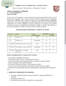 Lajme Konkurs pune – mësimdhënës, Podujevë Komuna e Podujevës ka shpallur konkurs pune për mësimdhënës.
