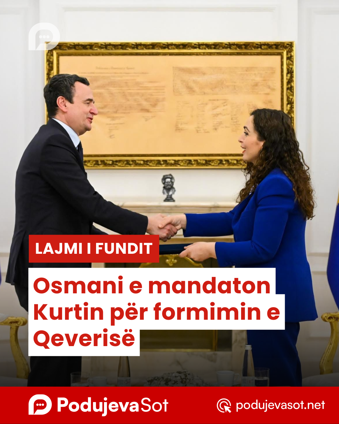 Dekreti për mandatim i është dorëzuar Kurtit nga shefja e shtetit para pak minutash.