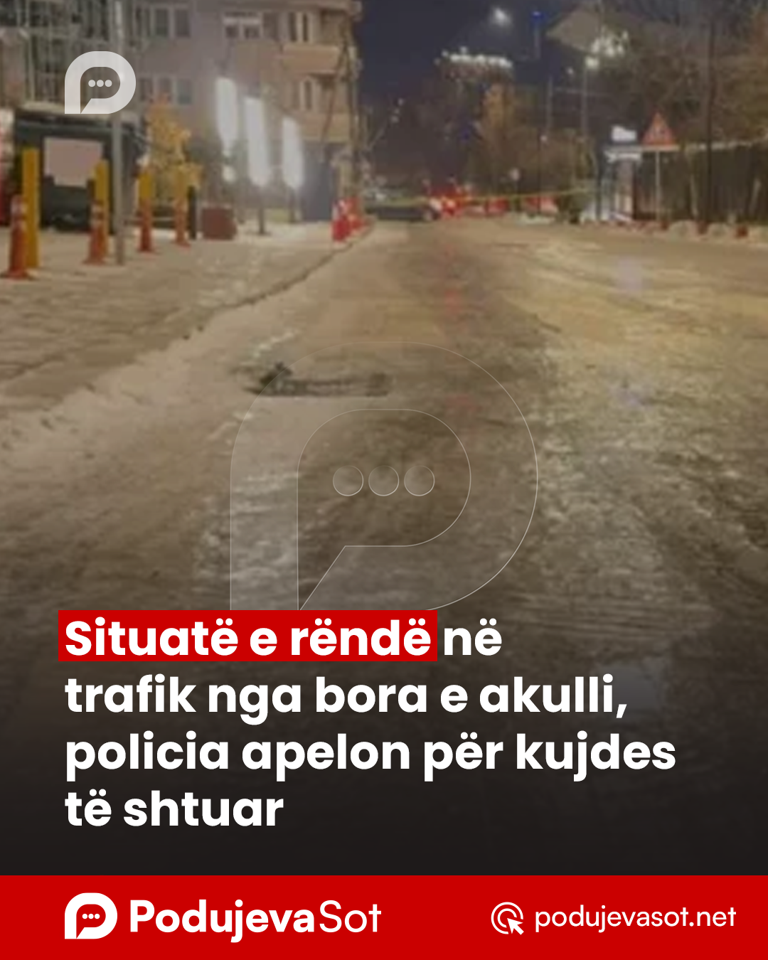 Policia e Kosovës bën të ditur se si pasojë e reshjeve atmosferike, rrugëve me ngrica dhe dukshmërisë së zvogëluar, kushtet e qarkullimit janë të vështirësuara në shumë segmente rrugore.