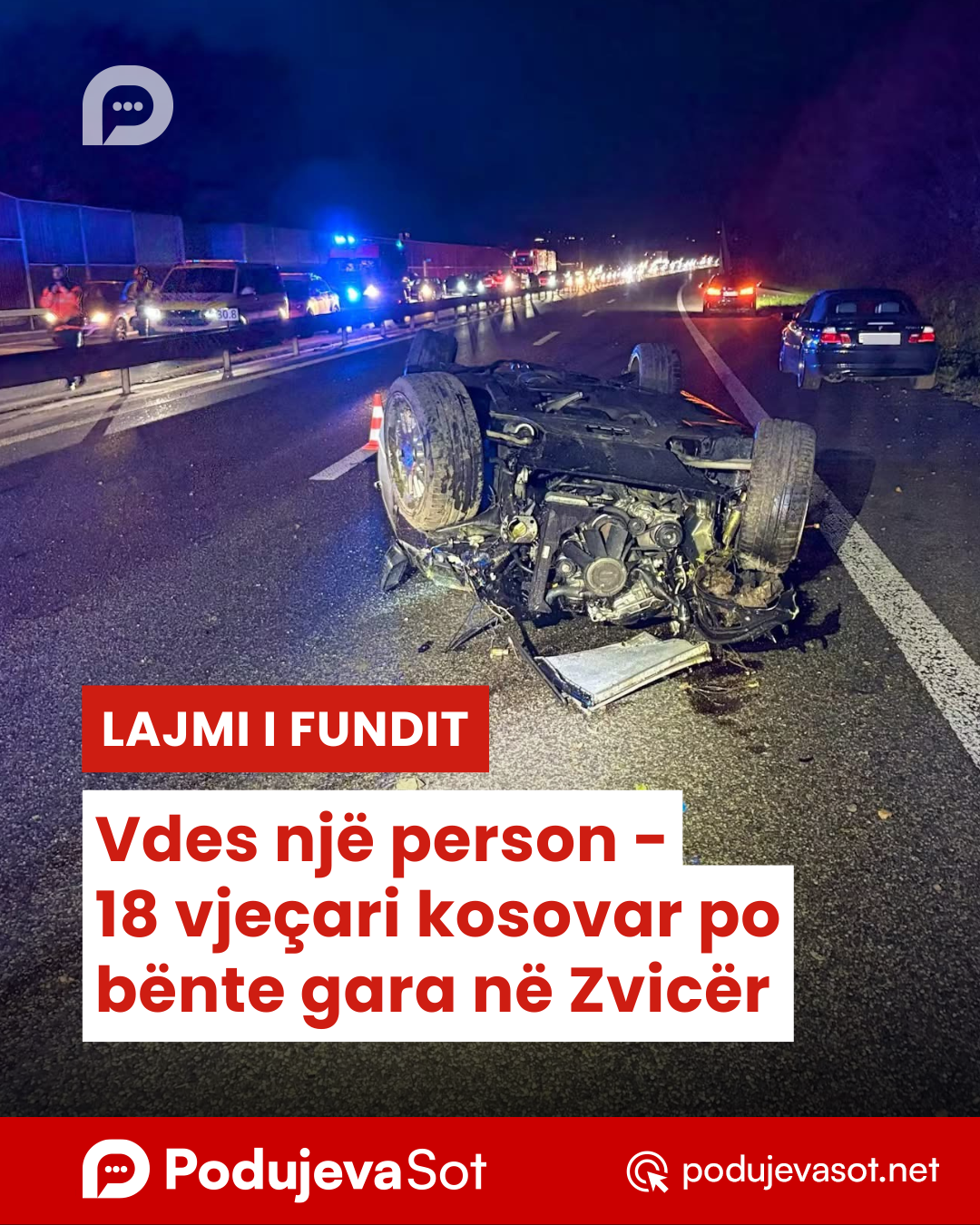 Sipas Policisë së Aargaut, aksidenti i parë ndodhi rreth orës 20:45, kur i riu kosovar, banues në Fricktal, duke drejtuar një BMW 330 Cabrio, humbi kontrollin mbi automjetin. Makina doli nga rruga, u përmbys dhe përfundoi në barrierën qendrore të autostradës. Shoferi u dërgua me urgjencë në Spitalin Universitar të Bazelit, ku sipas të dhënave të para lëndimet e tij nuk janë të rënda, ndërsa automjeti pësoi dëme totale, shkruan 22min.ch.